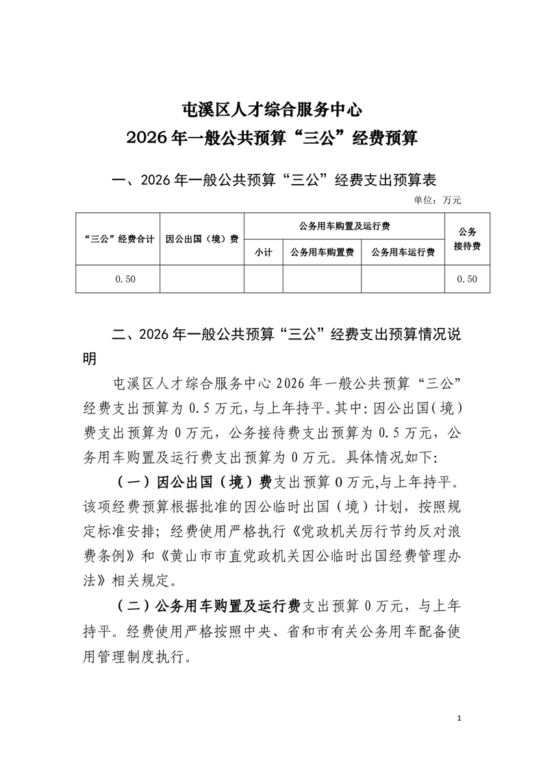 黄山市屯溪区人才综合服务中心2026年一般公共预算“三公”经费预算.pdf