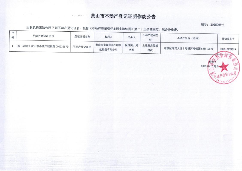 不动产登记证明作废公告(2025095-3、2025096-3、2025097-3)