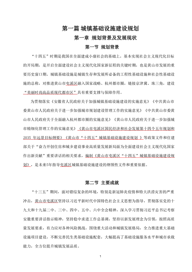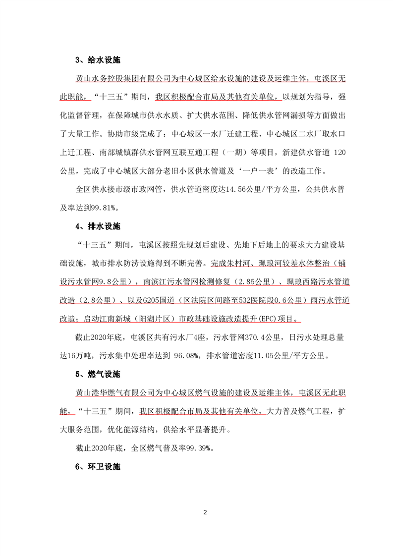 黄山市屯溪区“十四五”城镇基础设施发展规划(征求意见稿)