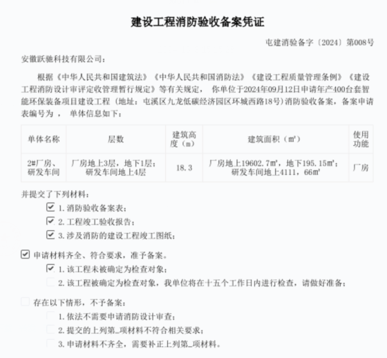 年产400台套智能环保装备项目建设工程消防验收备案