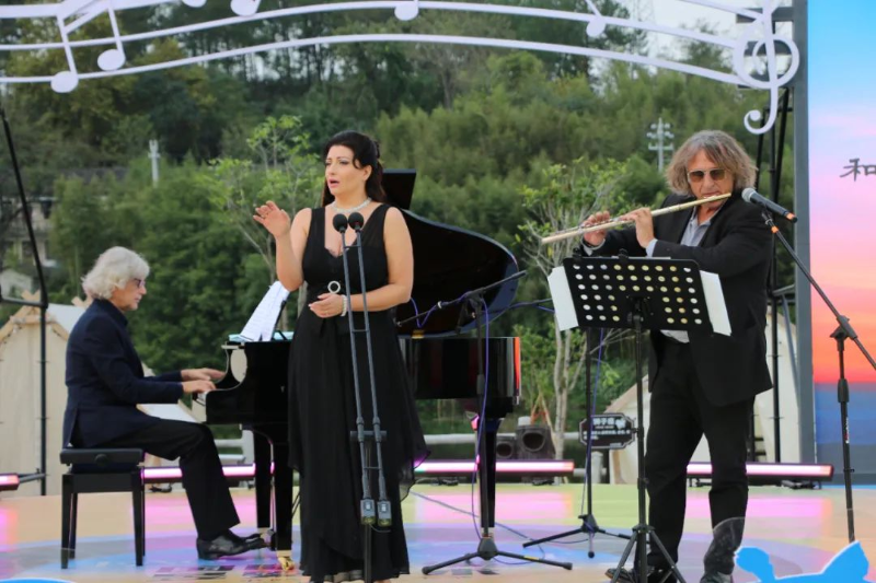 值得一提的是,活动还特意邀请了三位意大利著名艺术家,他们分别是:意大利著名长笛演奏家、作曲家安德里亚·切克默里,意大利著名钢琴演奏家、作曲家、莫扎特音乐新解项目的发起者塞巴斯蒂亚诺·布鲁斯科,意大利著名女高音、声乐导师齐娅娜·裘狄奇,三位艺术家的加入旨在进一步促进国际艺术交流,传递和平与美好的理念,用世纪交响谱写国际屯溪动人乐章。“今天的音乐会让更多的人欣赏到西方古典音乐的美妙,同时搭建了中西方文化交流的平台。观众很热情,艺术氛围浓厚,一切都那么美好。”齐娅娜·裘狄奇表示。