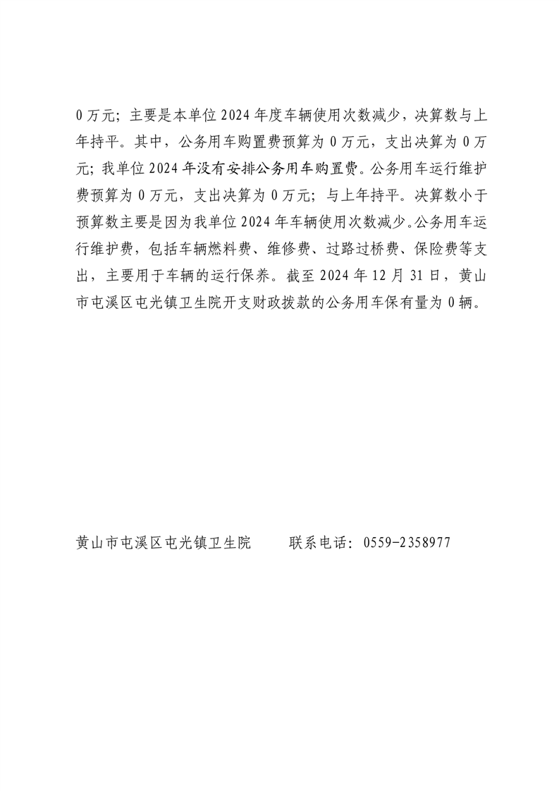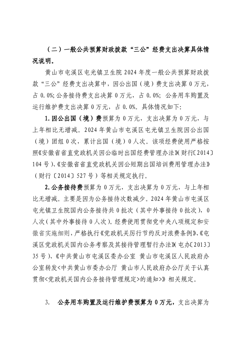 黄山市屯溪区屯光镇卫生院2024年度一般公共预算财政拨款“三公”经费支出决算