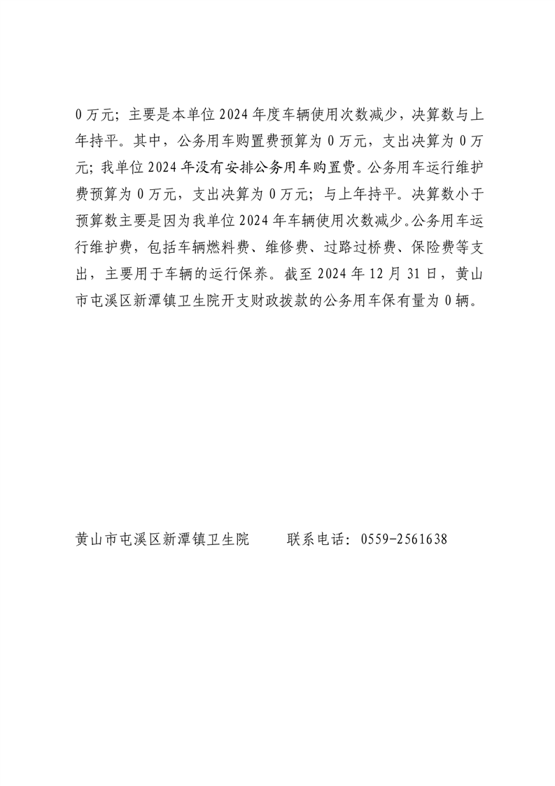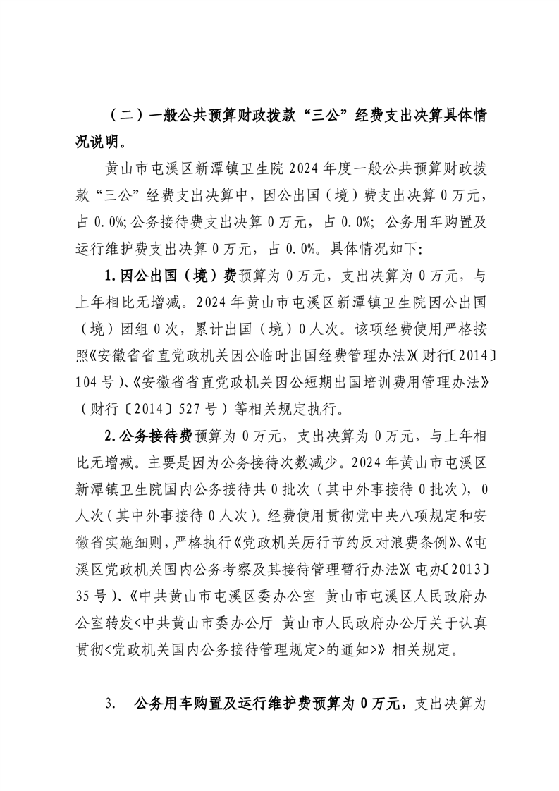 黄山市屯溪区新潭镇卫生院2024年度一般公共预算财政拨款“三公”经费支出决算