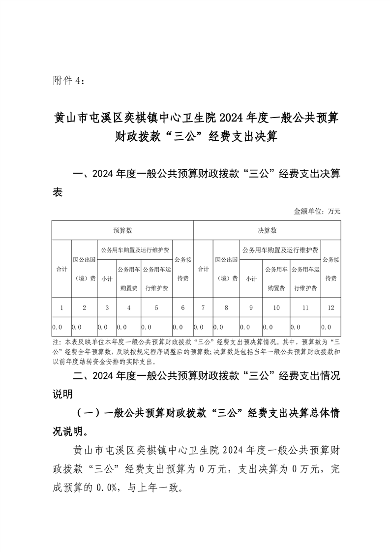 附件4:黄山市屯溪区奕棋镇中心卫生院2024年度一般公共预算财政拨款“三公”经费支出决算.pdf