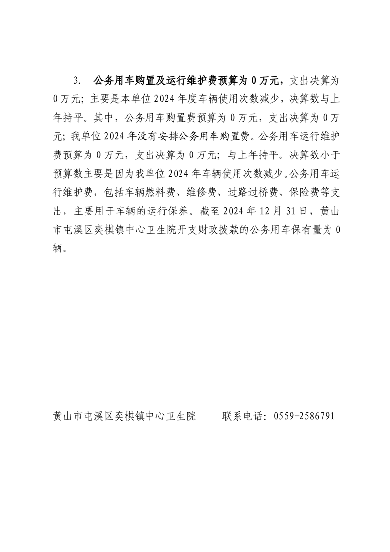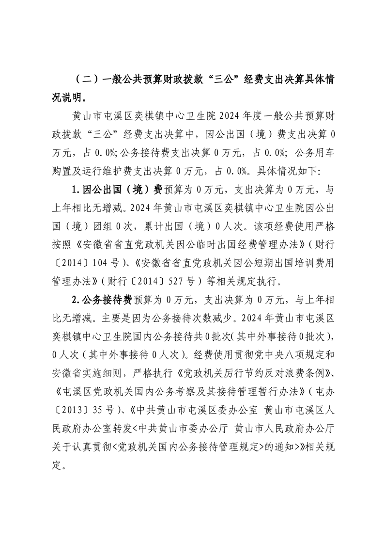 黄山市屯溪区奕棋镇中心卫生院2024年度一般公共预算财政拨款“三公”经费支出决算