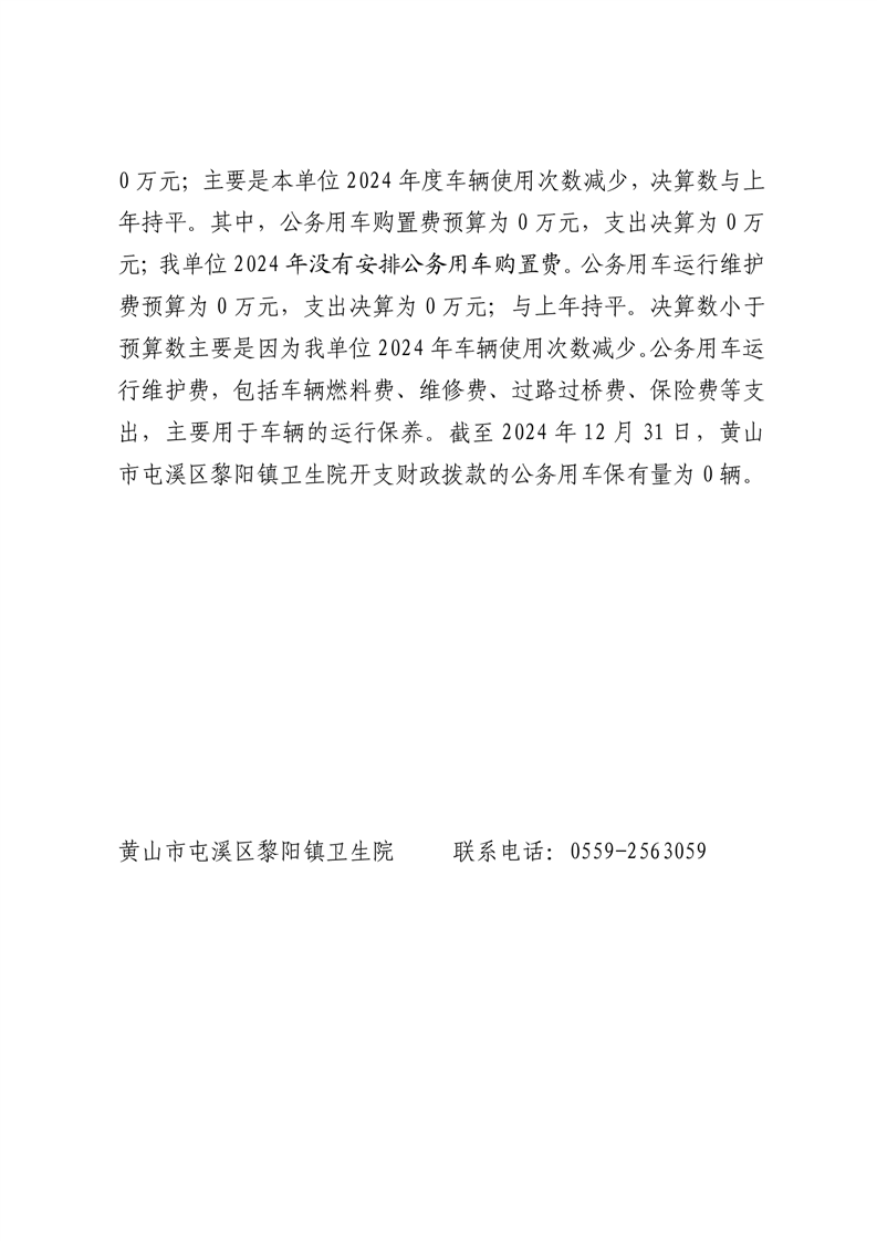 黄山市屯溪区黎阳镇卫生院2024年度一般公共预算财政拨款“三公”经费支出决算