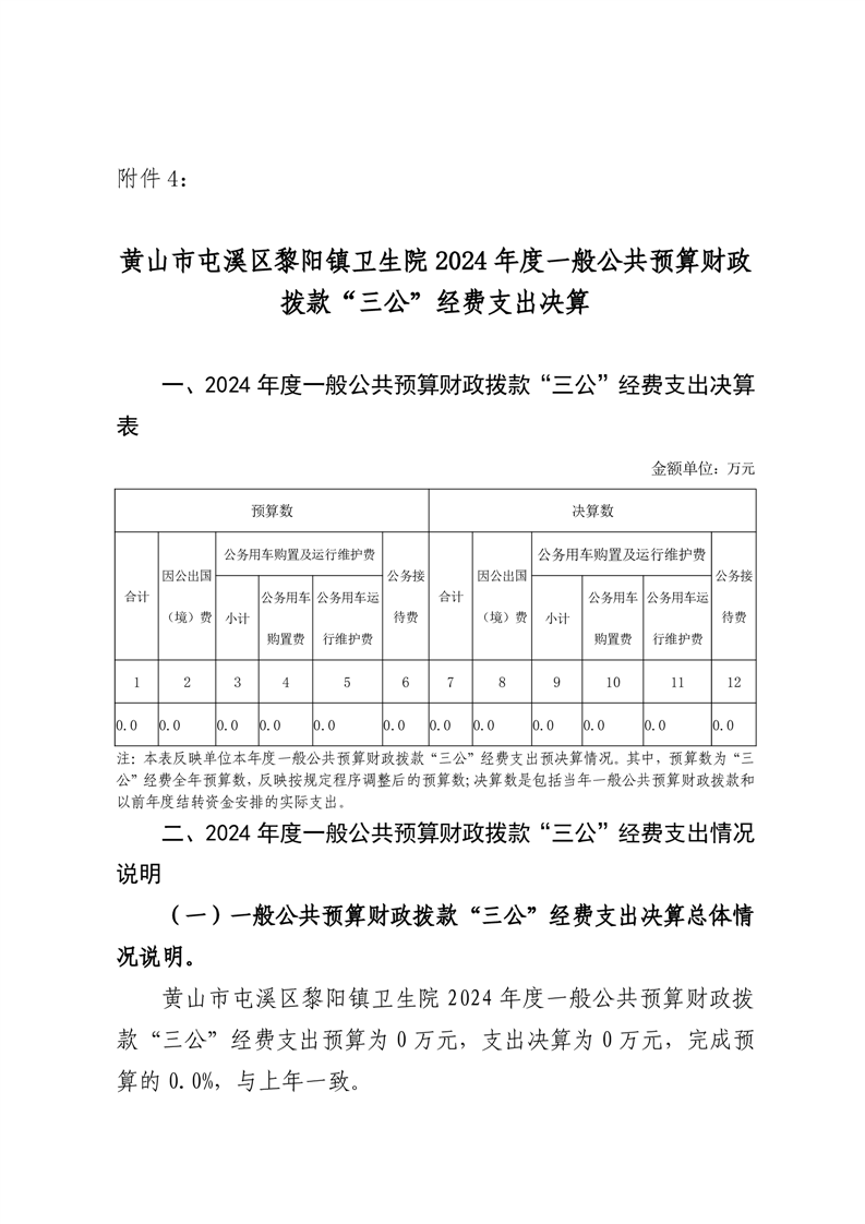 附件4:黄山市屯溪区黎阳镇卫生院2024年度一般公共预算财政拨款“三公”经费支出决算.pdf