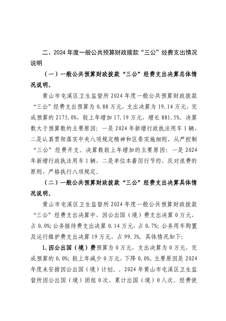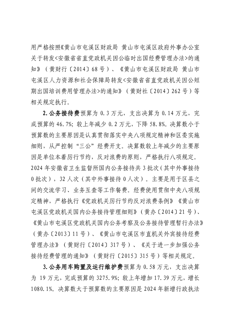 黄山市屯溪区卫生监督所2024年度一般公共预算财政拨款“三公”经费支出决算