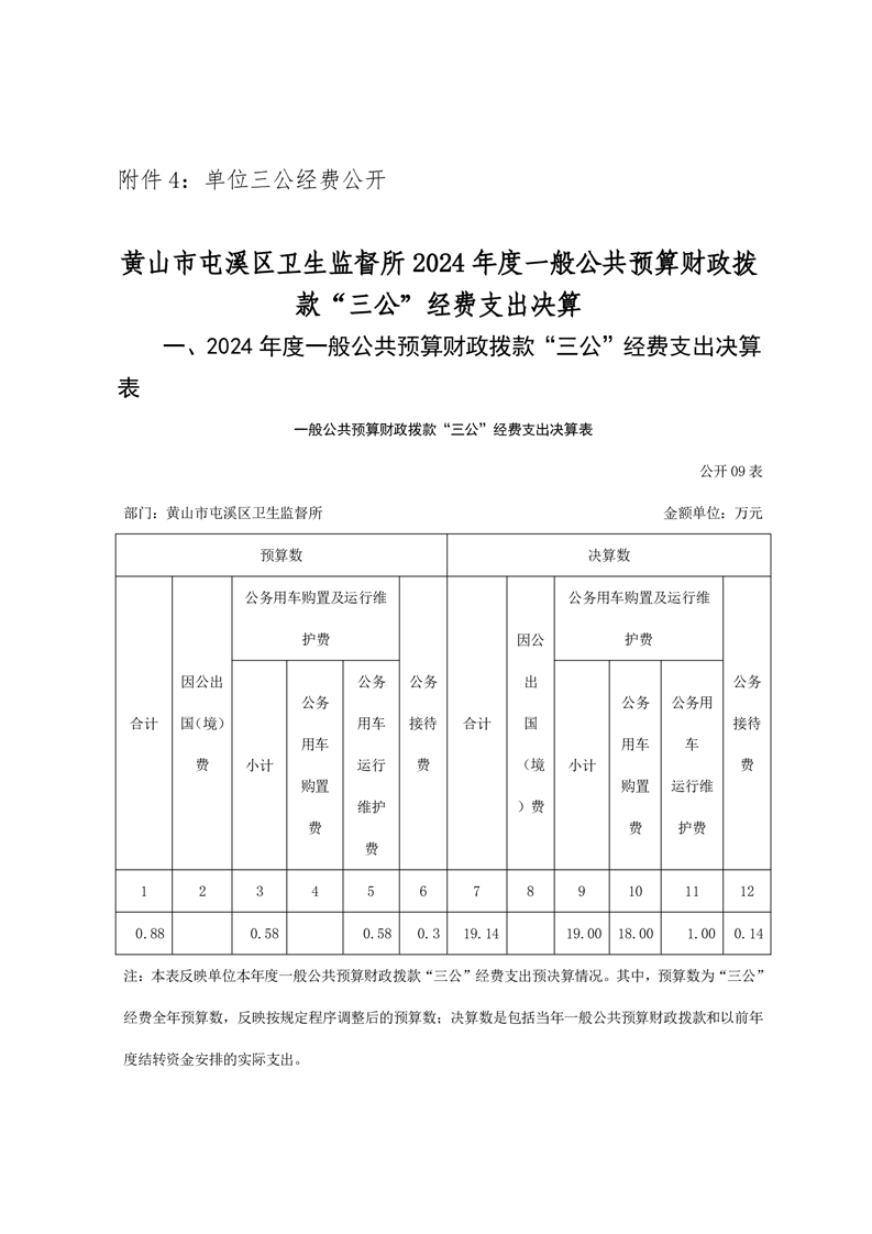 附件4:黄山市屯溪区卫生监督所2024年度一般公共预算财政拨款“三公”经费支出决算.pdf
