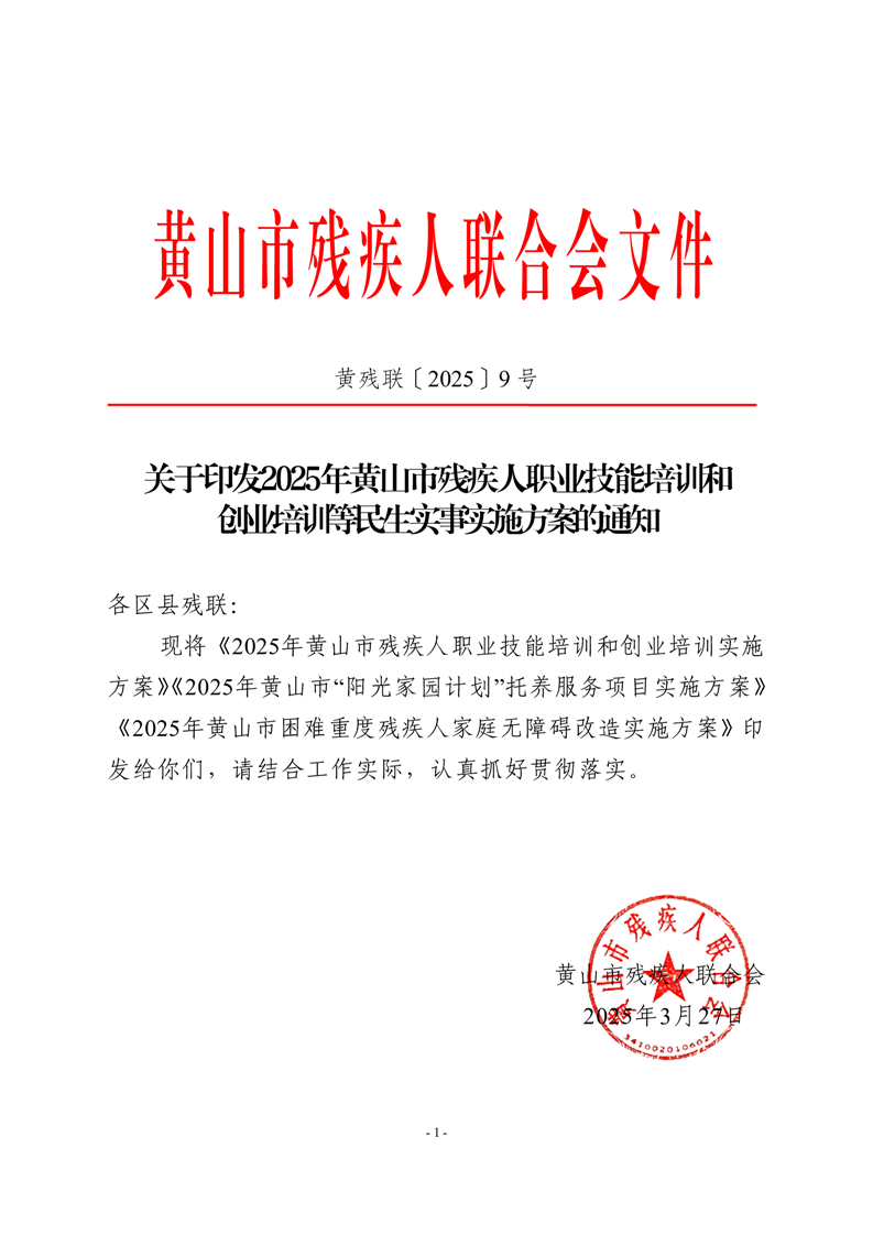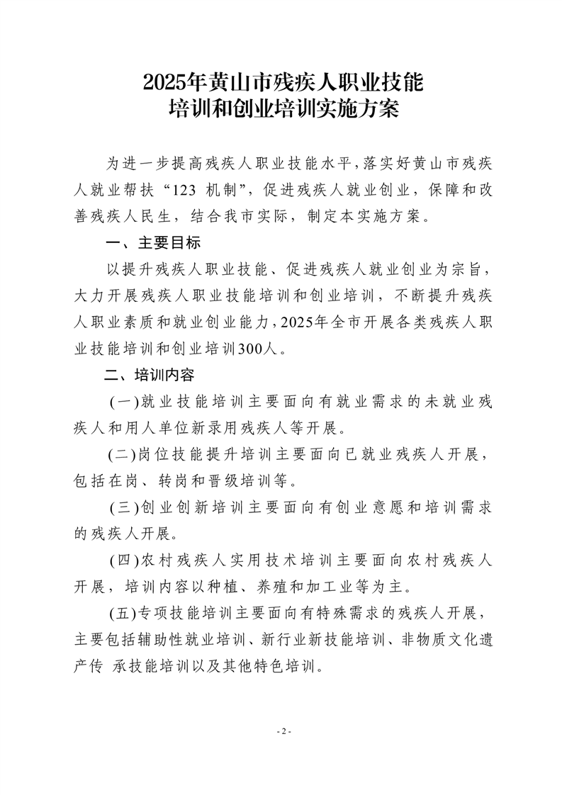 【文字解读】《关于印发2025年黄山市残疾人职业技能培训和创业培训等民生实事实施方案的通知》