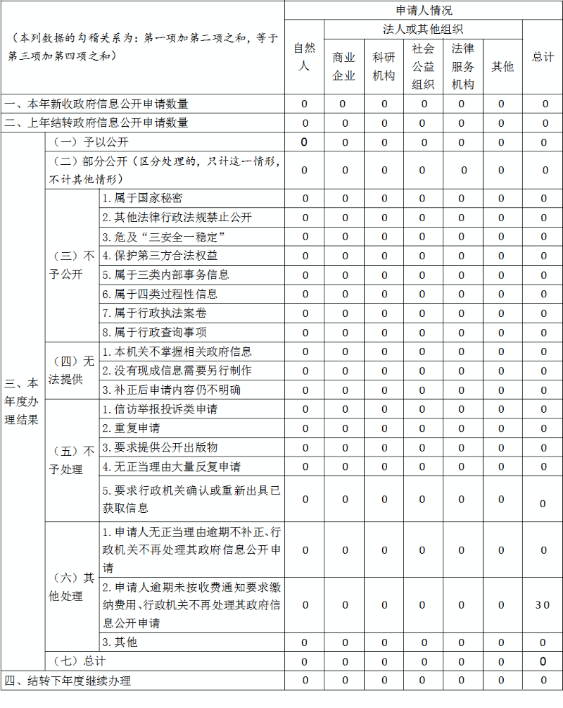 三、收到和处理政府信息公开申请情况
