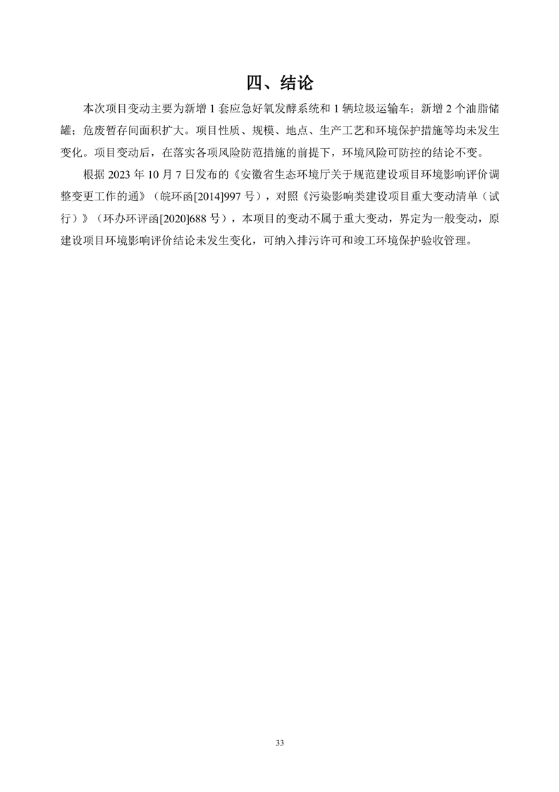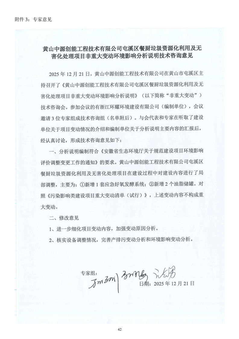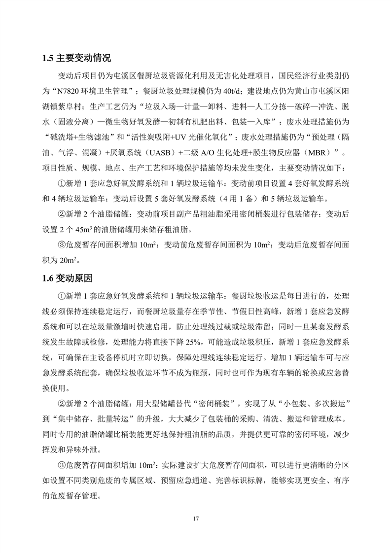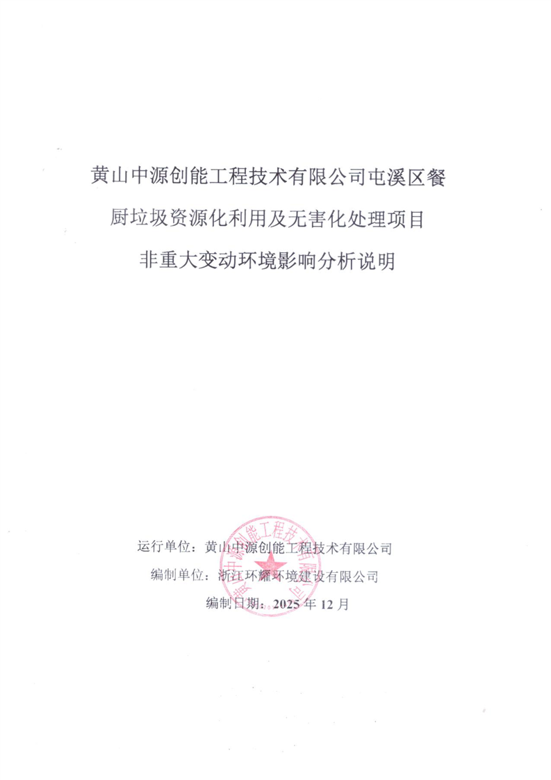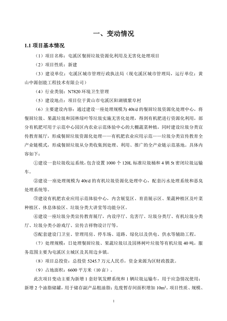 屯溪区餐厨垃圾资源化利用及无害化处理项目非重大变动环境影响分析说明
