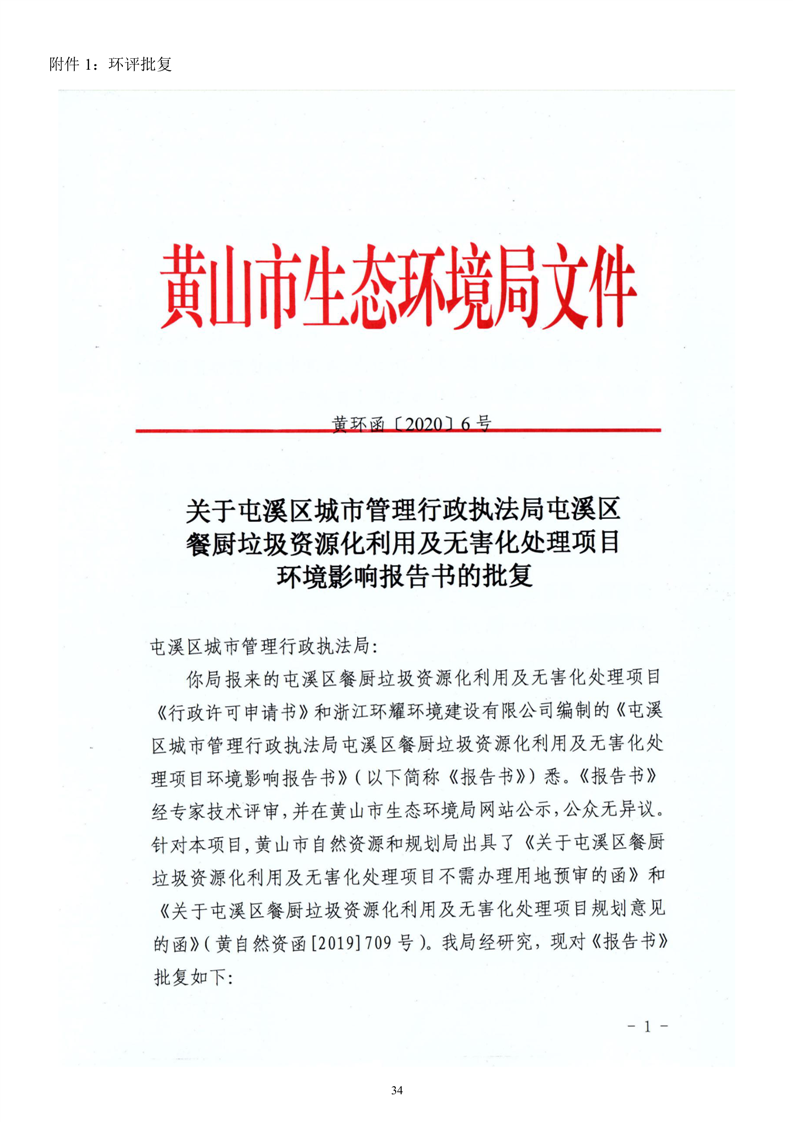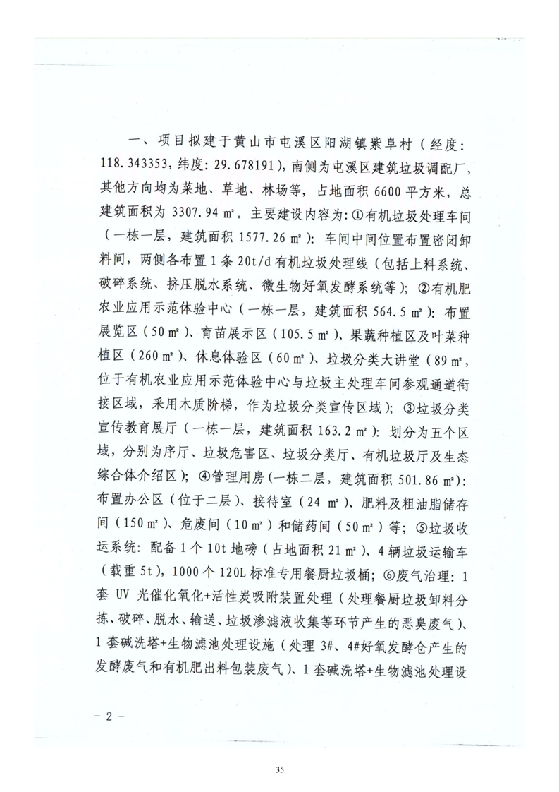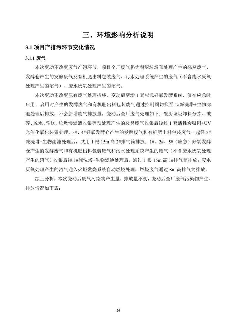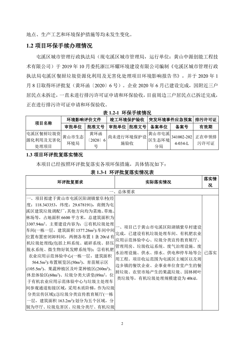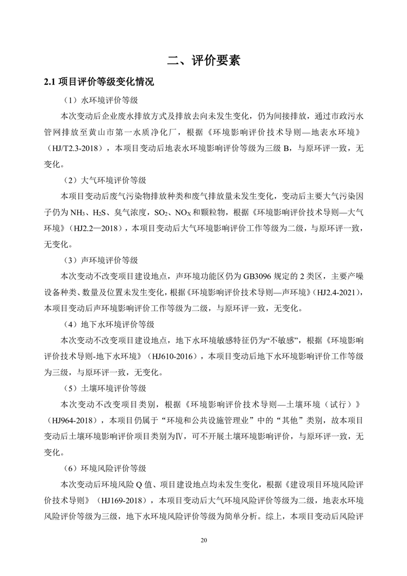 屯溪区餐厨垃圾资源化利用及无害化处理项目非重大变动环境影响分析说明