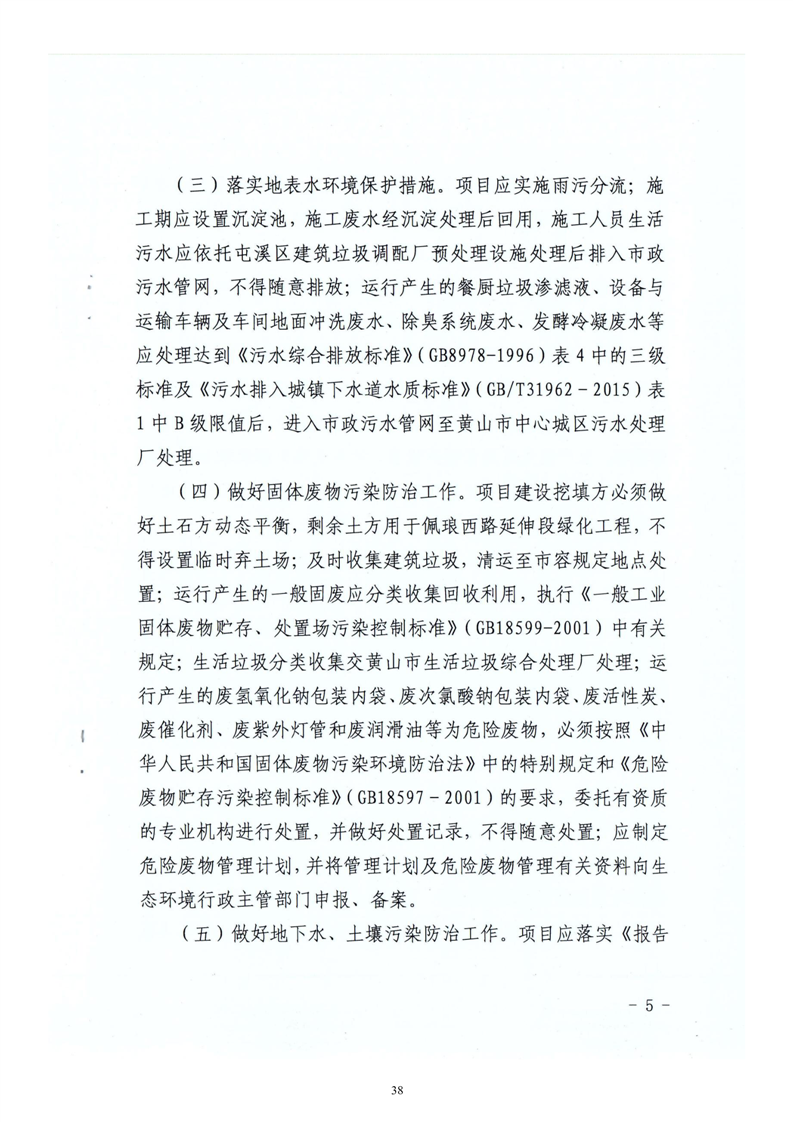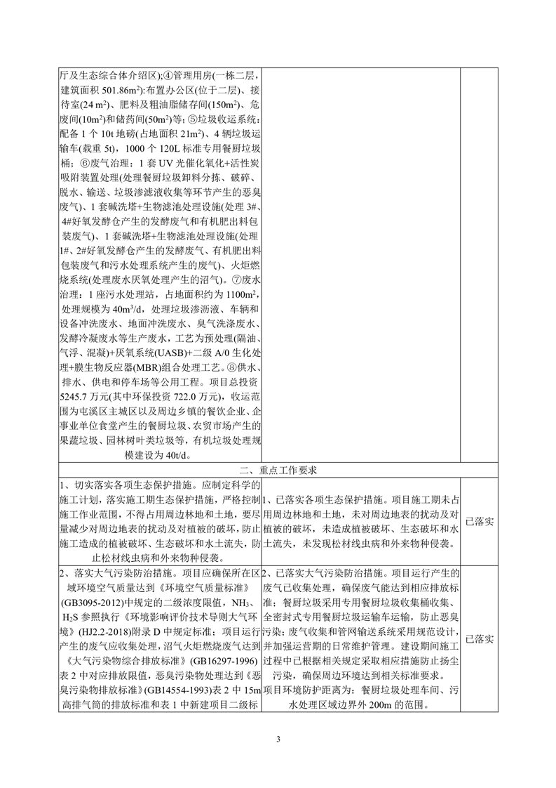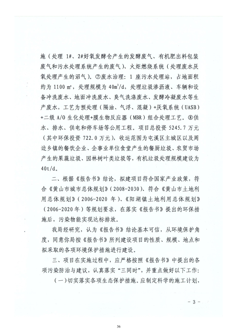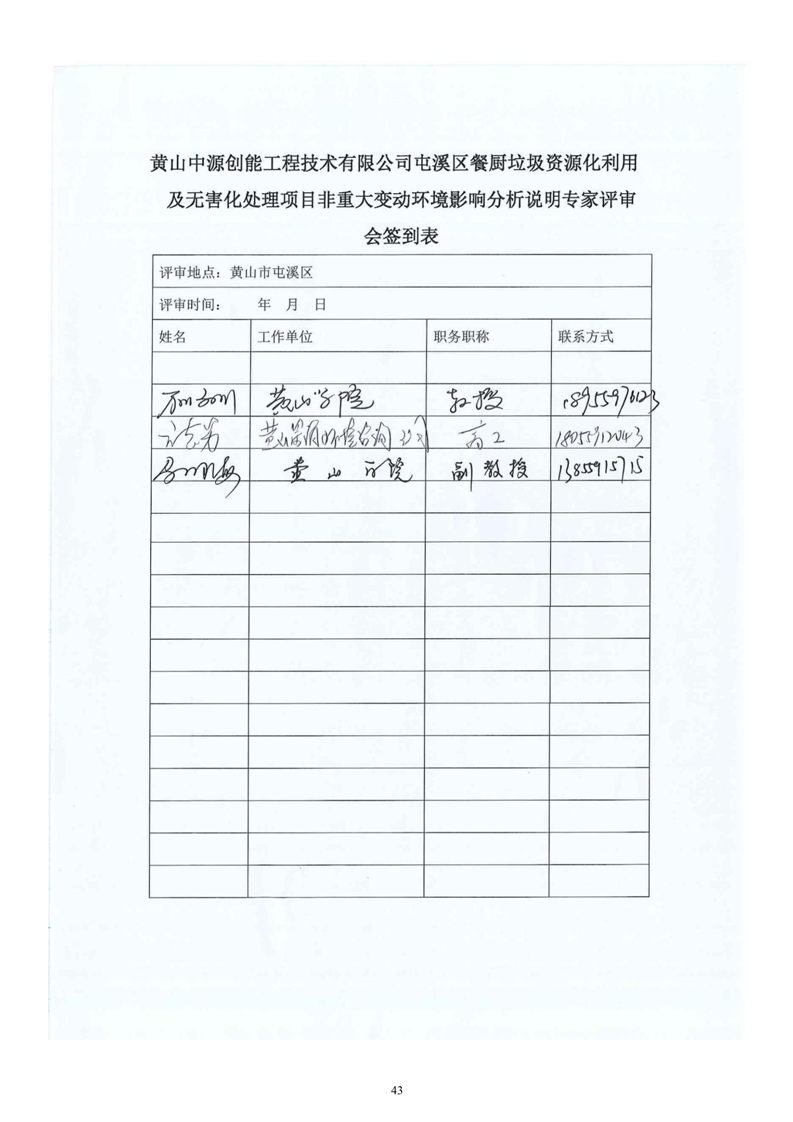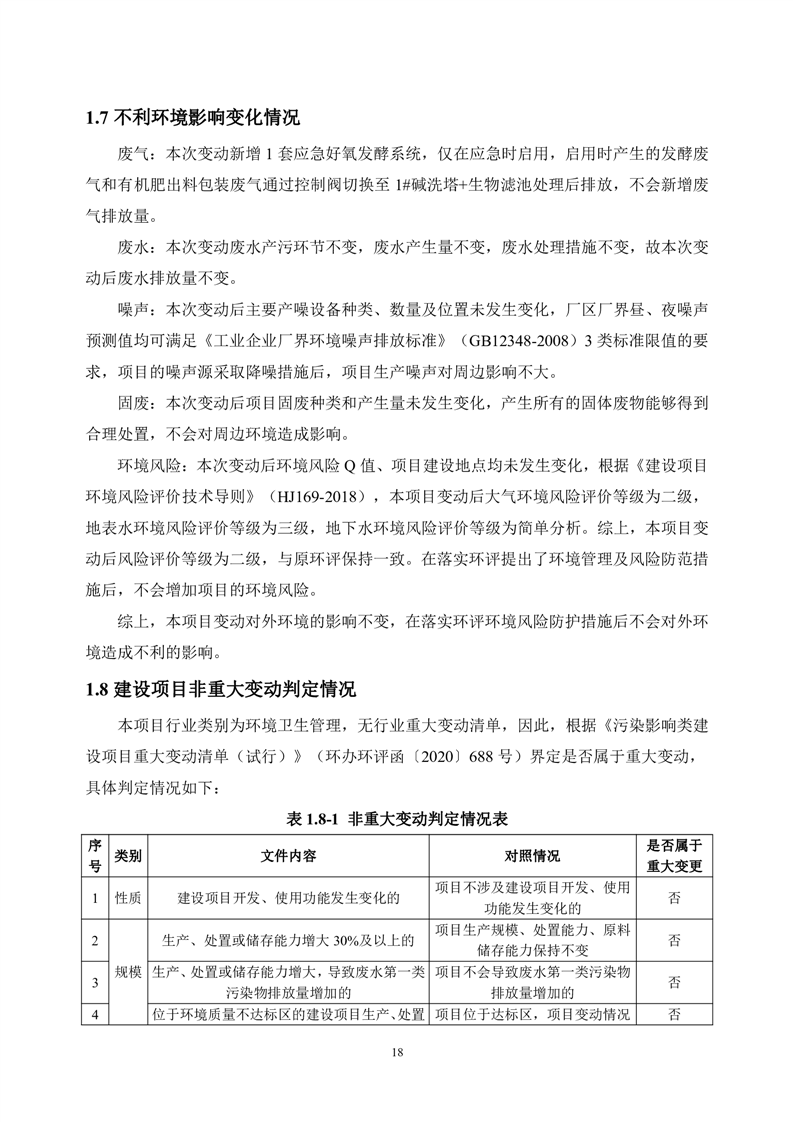 屯溪区餐厨垃圾资源化利用及无害化处理项目非重大变动环境影响分析说明