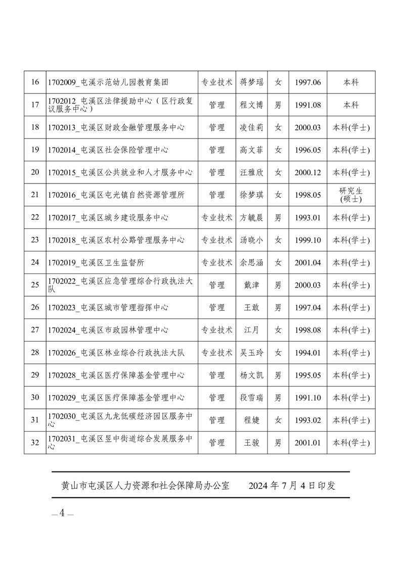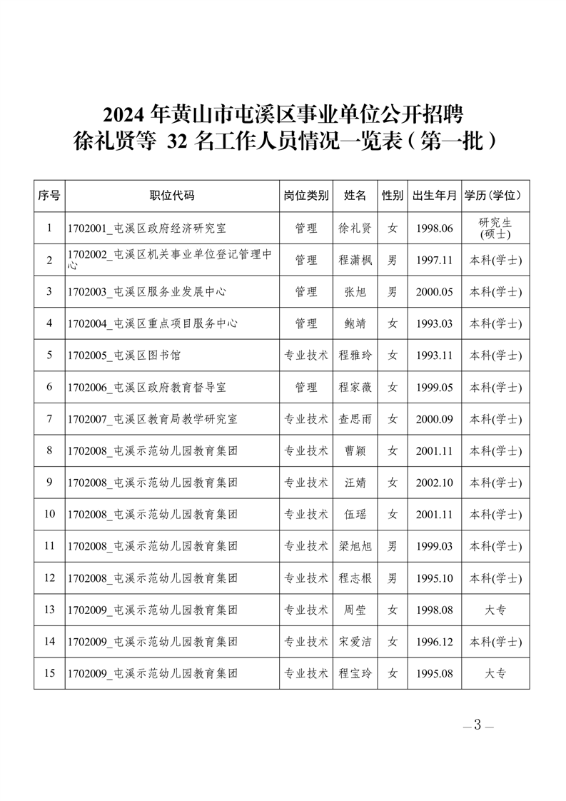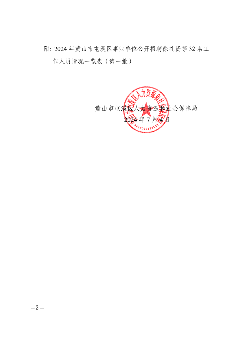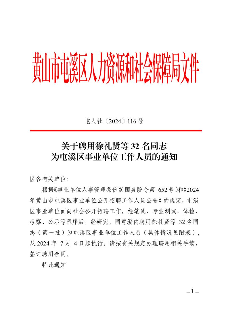 关于聘用徐礼贤等32名同志为屯溪区事业单位工作人员的通知