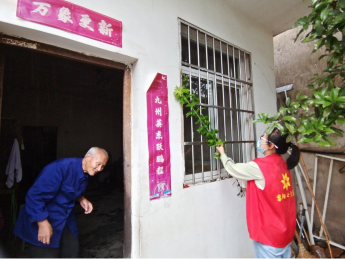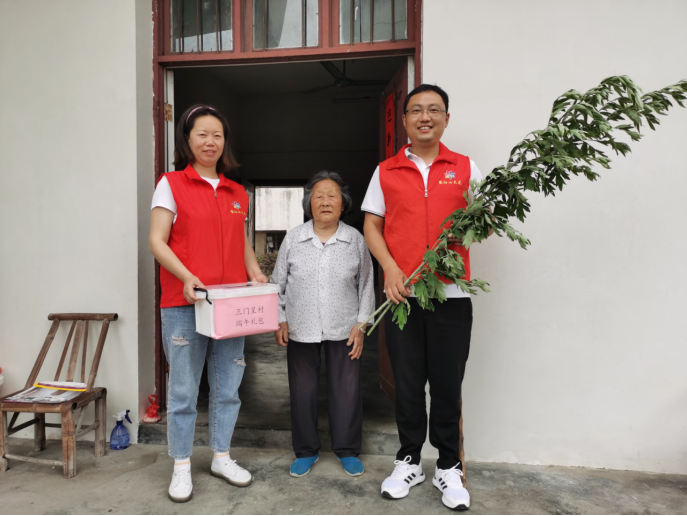 5月27日,三门呈村为9位90岁以上的高龄老人和2户计生特扶家庭送上“防疫爱心礼包”,教会他们如何正确佩戴和使用,并耐心告知疫情期间不要聚集、说话保持一米距离、家里常通风等注意事项。并为每户老人家中插上了艾叶,送上了美好祝福。