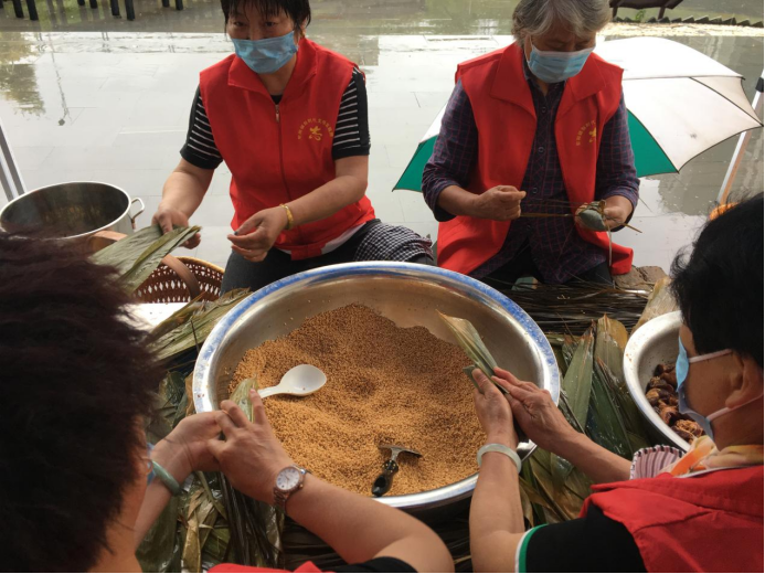 凤霞村开展“包粽子,迎端午”活动,并将热气腾腾的粽子送给村里的9名80岁以上高龄的老人。询问他们的近期生活、身体状况,了解他们的困难和需求,让他们感受到大家庭的温暖。