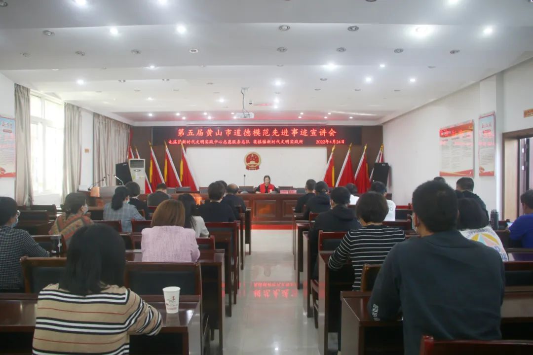 讲述道德故事,汇聚磅礴力量。4月24日下午,第五届黄山市道德模范先进事迹宣讲会走进奕棋镇,镇域内党员志愿者、干部职工、村民代表等40余人现场聆听宣讲会。