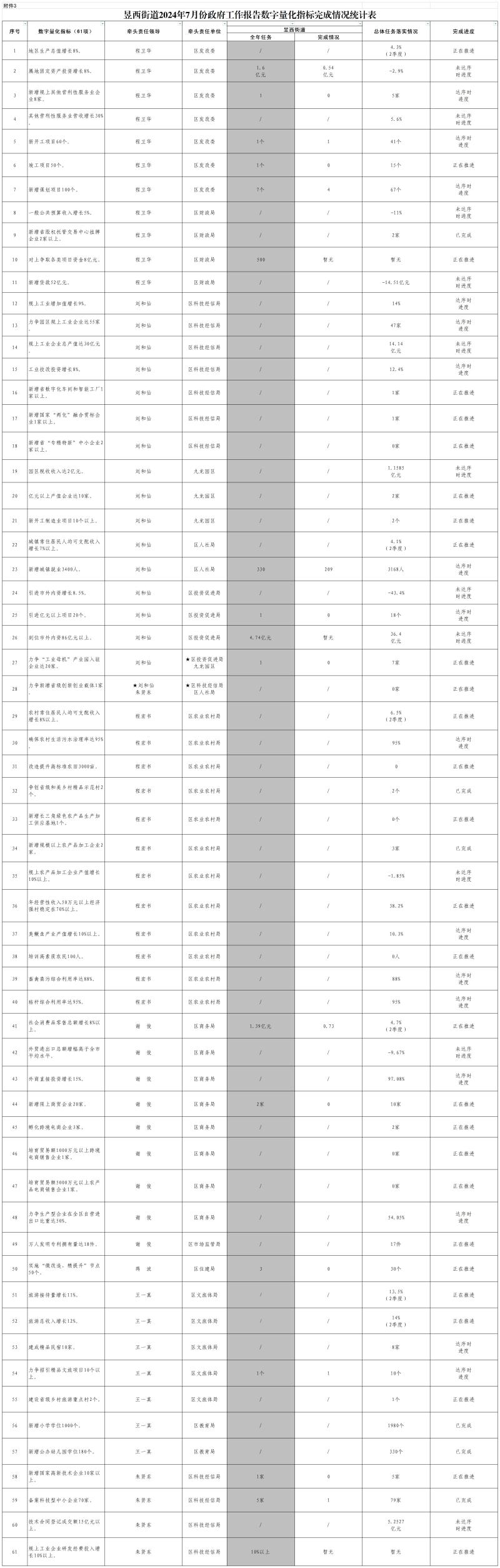 昱西街道2024年7月份政府工作报告数字量化指标完成情况统计表