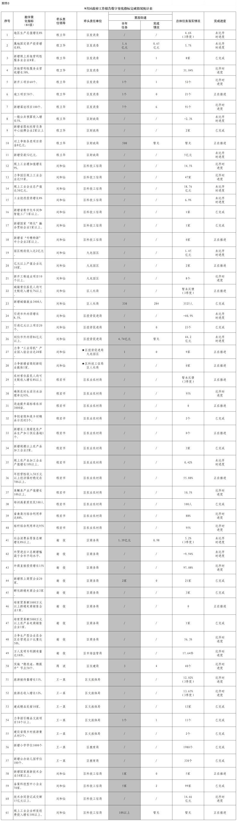 昱西街道2024年9月份政府工作报告数字量化指标完成情况统计表