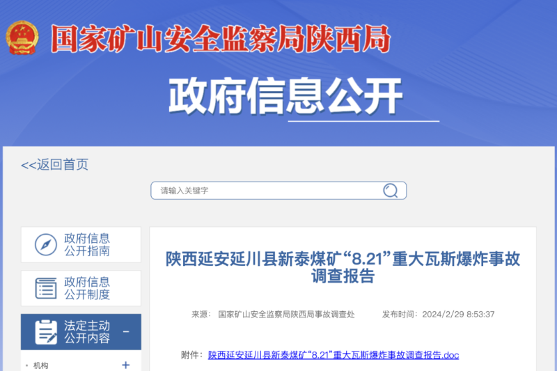 近日,国家矿山安全监察局陕西局网站公布事故调查报告。