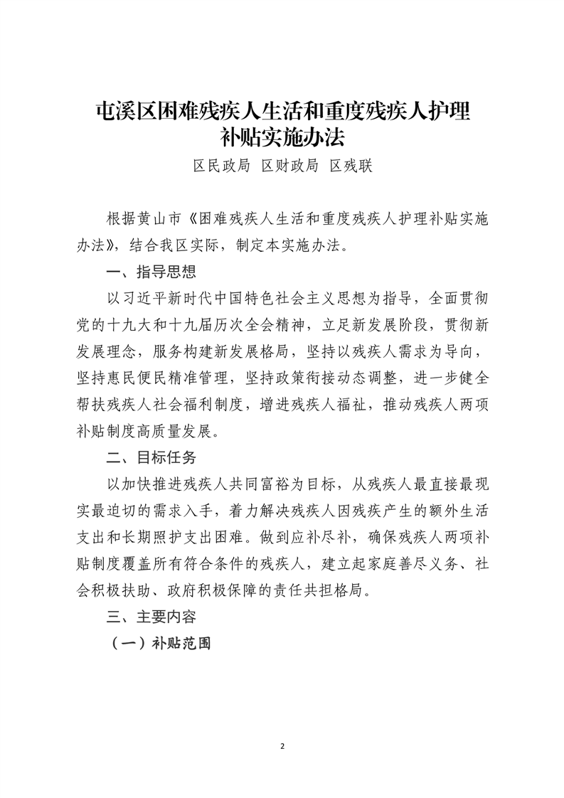 转发:关于印发《屯溪区困难残疾人生活和重度残疾人护理补贴实施办法》的通知
