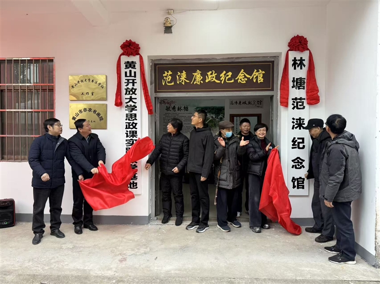 12月5日上午,黄山开放大学思政课实践教学基地暨“林塘范涞纪念馆”揭牌仪式、黄山开放大学书法学社成立大会暨第一届第一次会员大会,在屯溪区奕棋镇林塘村举行。市关工委主任叶枝光出席活动,市级相关部门、黄山开放大学、奕棋镇有关单位负责人及师生代表、村民代表齐聚一堂,共同见证校政企地协同助力乡村振兴的重要实践。