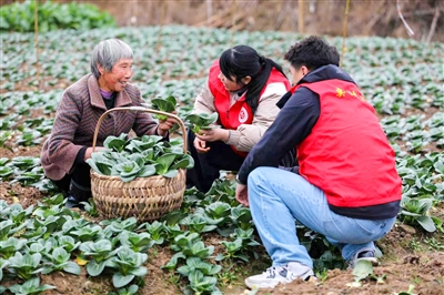 近日,屯溪区奕棋镇占川村田间,“村社直通”志愿者正协助村民将绿色蔬菜保“鲜”上市,既保障了“菜篮子”供应,也拓宽了村民致富渠道,助力乡村振兴。