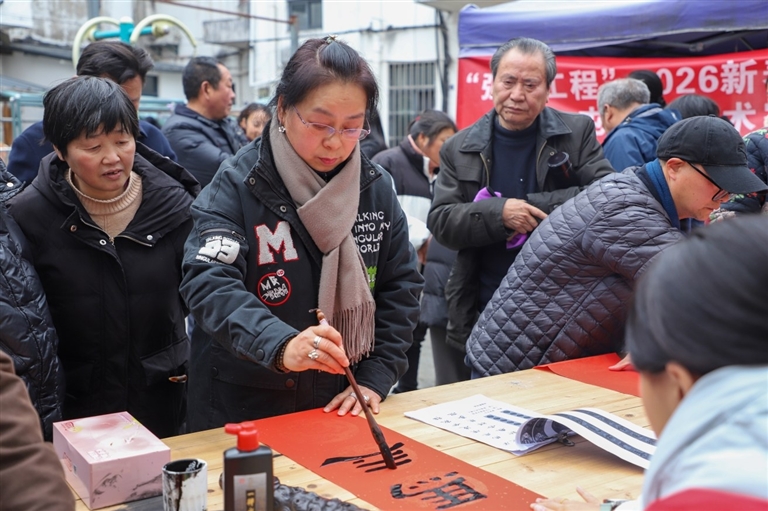 1月29日下午,屯溪区阳湖镇柏山社区联合屯溪区文联、屯溪区妇联,在青山塘小区开展“马到福来 墨香迎年”主题惠民活动,为居民送上“健康+文化”双份礼物。活动现场,书法家们手写春联和福字,送出诚挚祝福;医护人员提供血压血糖检测、健康咨询等服务,传递贴心关怀。