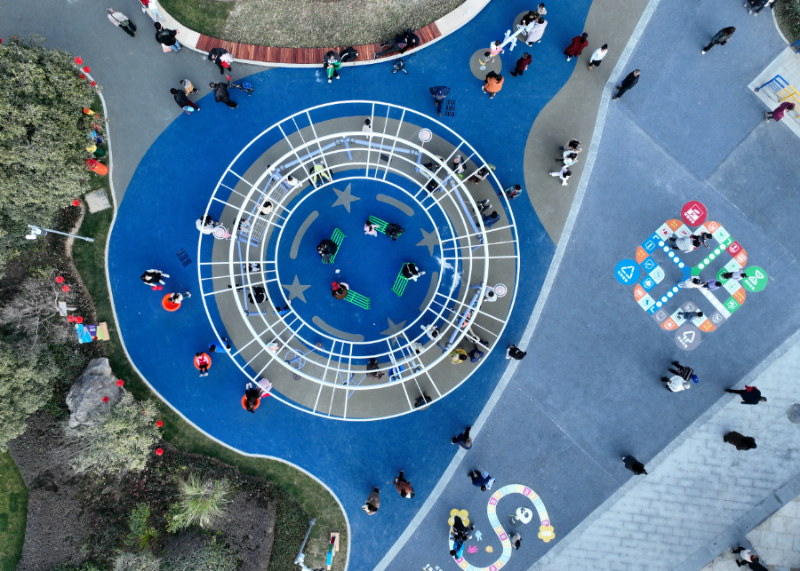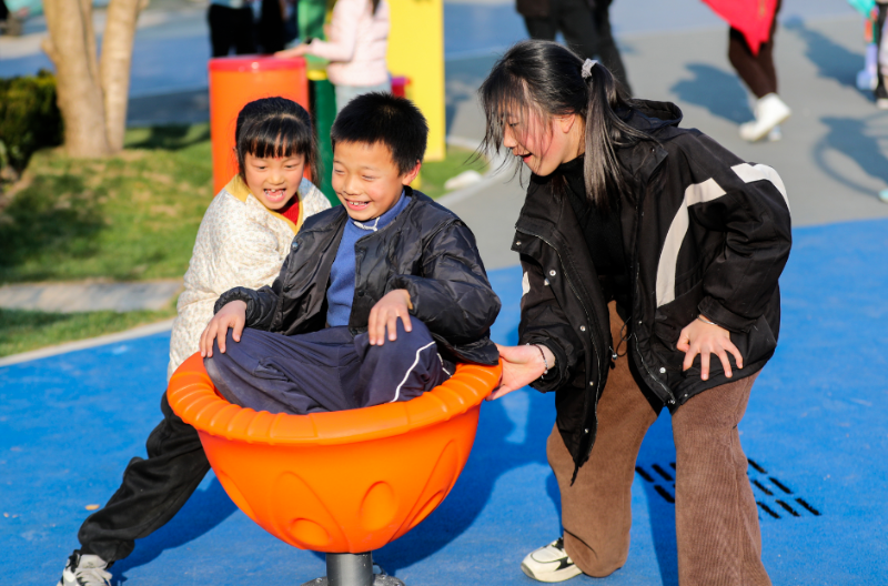 如今,改造后的黄山市儿童友好公园焕然一新:面向低龄儿童的矮坡滑梯、互动沙池等设施色彩明快、安全舒适;面向稍大年龄段的“穿越网洞”“天秤秋千”等设施既富挑战性又充满趣味。更贴心的是,公园还充分考虑了家长的需求,新增了49个便民停车位,让陪娃游玩的家长们告别“停车难”的烦恼。