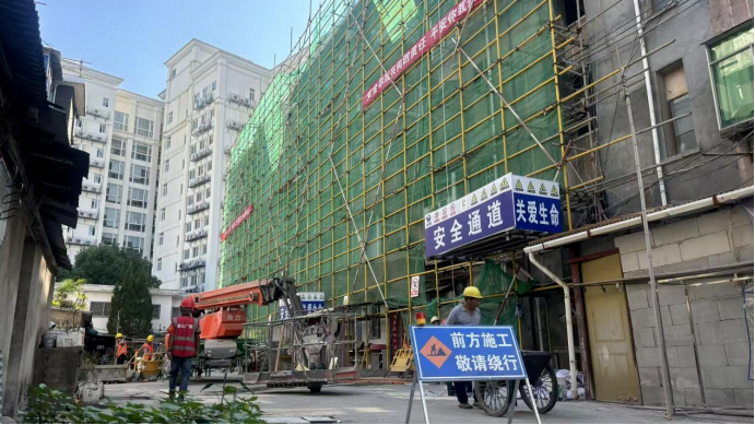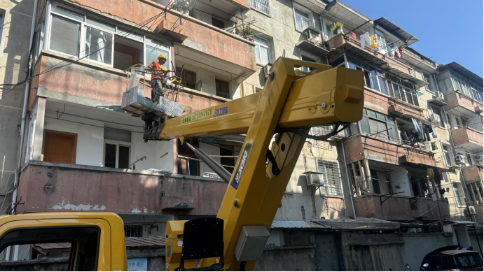 在位于昱东街道的市制药厂宿舍改造现场,一部分工人正在起重机上对外墙生锈的晾衣架进行拆除,另一部分正在对屋顶开展水平改坡防漏作业。“这次改造制药厂宿舍的内容是屋面漏水改造,外墙病害处理,地下管网雨污水改造,以及路面硬化和围墙重造。”施工现场负责人高福庆告诉记者,“我们是9月18日进场的,目前正在进行外墙和屋面的改造和病害处理,11月底基本完成,预计12月中旬到时候项目改造结束。”