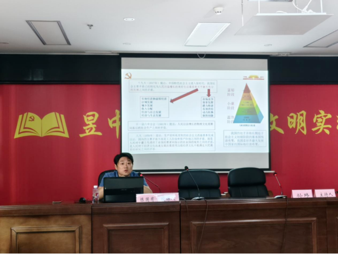 昱中街道宣讲会邀请了区委党校副校长、高级讲师陈国有现场授课。