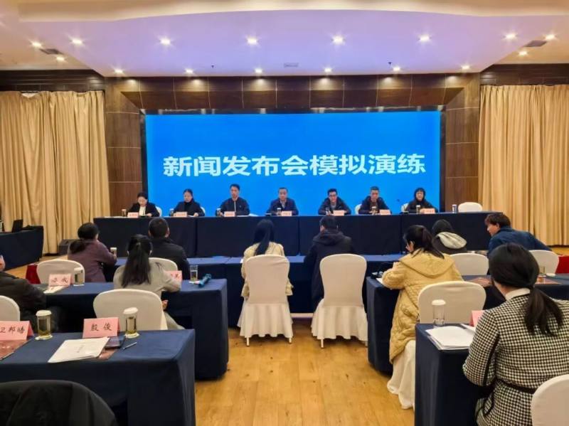 在模拟演练现场,参训学员分为4组,新闻发言人组现场模拟召开新闻发布会、记者组现场提问、专家组逐一点评、智囊团组现场观摩。全体学员分工明确,进行角色扮演,专家组提出了专业的意见和建议。