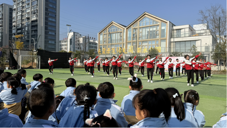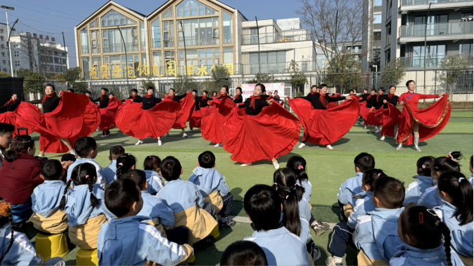 精彩不止于此,老年大学的爷爷奶奶们还带来了歌舞表演,孩子们看得入迷,掌声不断。