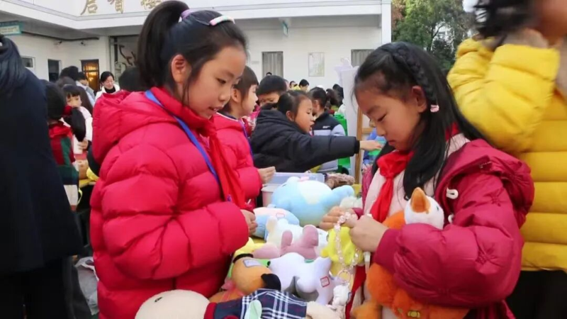 与此同时,屯溪长干小学正热火朝天地开展“跳蚤市场”爱心义卖活动。玩具、文具、课外读物、手工艺品琳琅满目,孩子们化身“小小售货员”,热情吆喝、精心推介,校园内人流穿梭,欢声笑语与清脆叫卖交织成一曲温暖而生动的元旦交响曲。所有义卖善款将全部用于慰问社区困难老人,让爱心在传递中升温,在行动中升华。“通过义卖献出一份爱心,能帮助到有需要的老人,我感到特别自豪。我也真正体会到了分享的快乐。这个元旦,过得特别有意义。”屯溪长干小学学生方奕浵脸上洋溢着满足的笑容。“我们希望通过这样富有年味的实践活动,把爱心传递给社区老人,更让孩子们在真实情境中学会分享、懂得关爱、践行责任。”屯溪长干小学大队辅导员孙琼表示,“这不仅是一场迎新活动,更是一堂润物无声的德育课,充分展现了我校‘仁爱育人’的教育理念和学生阳光向上的成长样态。”