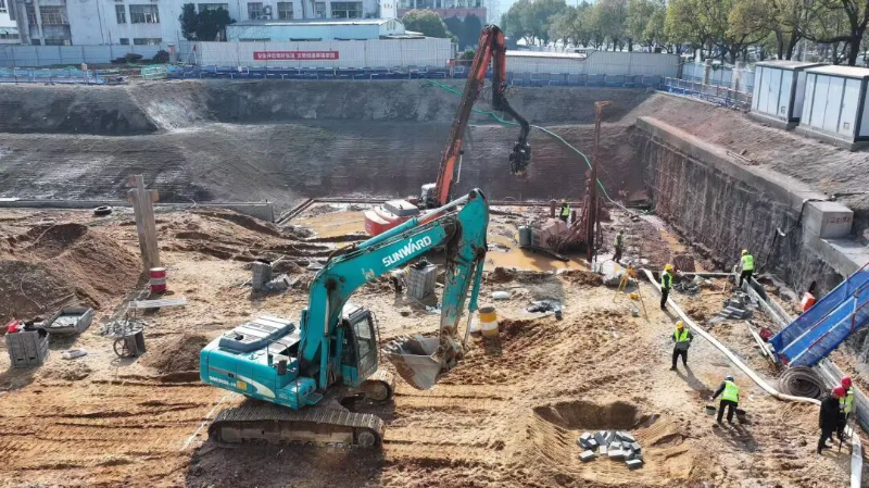面对工期紧、任务重的挑战,施工现场处处涌动着争分夺秒、大干快上的攻坚热潮。项目施工方已制定详尽的倒排工期计划,充分利用当前晴好天气窗口,全力冲刺施工进度。“为抢抓基础工程进度,我们计划施工至腊月二十七。”程华表示,现场投入了两台打桩机、注浆机、自动注浆设备、大型挖掘机等全套机械设备,所有设备满负荷运转,施工人员轮班作业,全力保障工程高效推进。