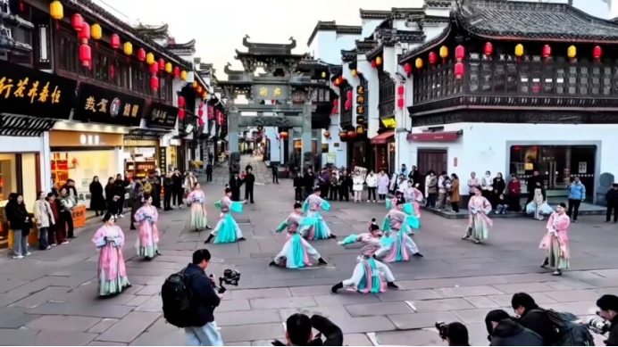屯溪老街,青石板上回响着宋韵遗风。“来屯嬉”沉浸式演艺中,NPC化身徽州仕女、墨匠、茶博士。在点茶、抛绣球、制墨等互动中,游客手持仿宋“会子”,打折购买一碗热腾腾的毛豆腐或一杯上好清茶,此刻,消费成了文化传承的温柔载体。