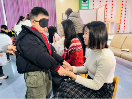 如果说讨论是心灵的触碰,那游戏便是欢乐的海洋。趣味游戏“蒙眼找妈妈”将现场气氛推向了最高潮。宝贝们蒙上眼睛,仅凭触摸妈妈的手、脸或衣物来辨认。有的孩子毫不犹豫地扑进妈妈怀里,有的则在犹豫试探后露出恍然大悟的笑容。在默契的互动中,亲情的纽带悄然加固,欢笑声、惊呼声交织在一起,定格了无数温馨而有趣的瞬间。