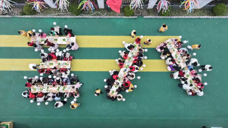 当日下午,幼儿园操场上洋溢着欢声笑语,一场以“时光‘生’彩 唯爱永恒”为主题的庆祝活动温馨上演。活动中,大班两个班级的孩子们整齐落座,在地面组成“三”“八”字样,并表演手势舞《有你就幸福》,用纯真的方式向身边的女性长辈送上节日祝福。在老师的引导下,孩子们与妈妈、奶奶等女性家长携手合作,以生菜、满天星等自然材料为素材,共同创作出一束束创意十足、清新别致的“蔬菜花束”。