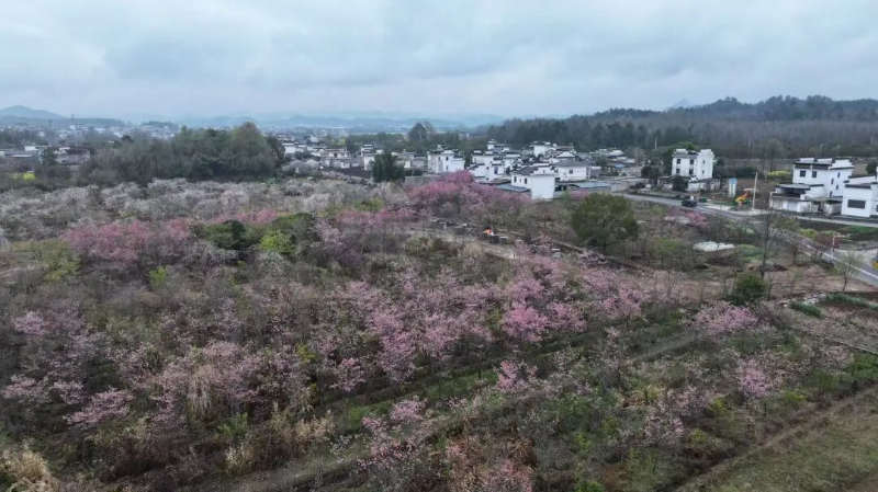 春风送暖,繁花竞放。黄山市屯溪区屯光镇汉沙村60余亩樱花迎来盛花期,连片花海在山间舒展,粉白枝头如云似霞,勾勒出一幅诗意悠然的徽州春日图景。