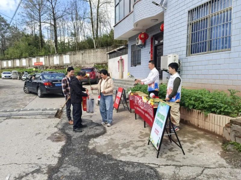 阳湖镇兖溪村免费鲜花领取点同样暖意浓浓。志愿者一边将一束束鲜花递到村民手中,一边耐心讲解山林防火的重要性,并通过发放《文明祭扫倡议书》,广泛宣传家庭追思、网络祭扫、踏青遥祭、撰文缅怀等低碳祭扫方式,引导大家用更文明、更健康的方式传承孝道文化,表达对先人的缅怀之情。