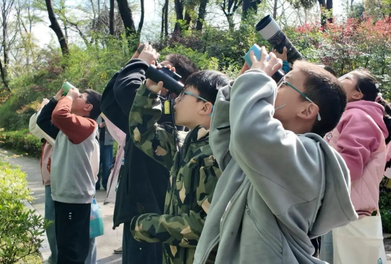 “我今天看到了乌鸫、张飞鸟!以前只在书本上见过,没想到它们就生活在我们身边!”学生于沐阳兴奋地说。