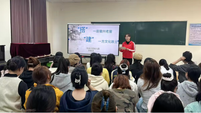 活动中,屯溪示范幼儿园三位骨干教师结合各自的教学实践,向未来的“准幼师”们呈现了三个富有徽州地域特色与儿童视角的课程案例。生动的讲述、丰富的影像记录以及背后蕴含的教育思考,让在场学生真切感受到“幼儿教育是带着生命温度的专业实践”。