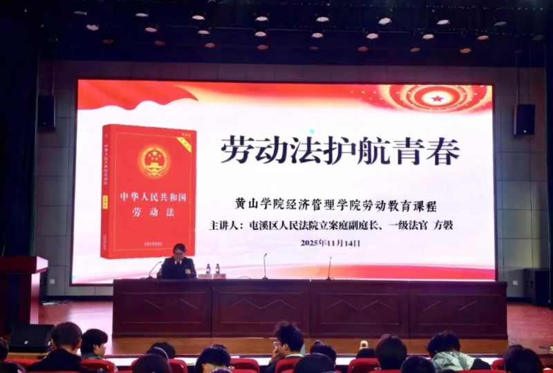 “在课余时间兼职、勤工俭学,算不算建立劳动关系?加班工资该怎么算?”带着大学生们对职场的懵懂与困惑,近日,屯溪区法院黄山经济开发区人民法庭法官走进黄山学院经济管理学院,为300余名即将踏入实习、就业阶段的大学生带来了一场干货满满、暖意十足的劳动法专题讲座。这也是法庭首次面向高校学生开展规模化法治宣讲,将司法服务延伸至人才培养“最后一公里”。