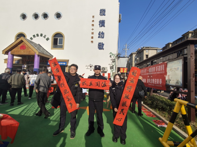 活动现场,书法大师挥毫泼墨,一幅幅“法治护航添吉庆 骏马迎春启新程”“学法懂法明事理 守法用法护家园”等春联接连诞生,在承载着辞旧迎新的美好愿景的同时,让居民们充分感受到法治熏陶。现场还设置了法律咨询台,司法所工作人员结合春节期间常见的非法集资诈骗手段、农民工工资支付、烟花爆竹燃放等热点问题,向居民们进行细致的法律解读和风险提示,居民们积极参与,驻足咨询法律问题、认真研读宣传资料、领取法治春联,脸上洋溢着幸福的笑容。此次活动以春联为媒、以法治为魂,实现了“送春联、传祝福、普法律、暖民心”的多重效果。