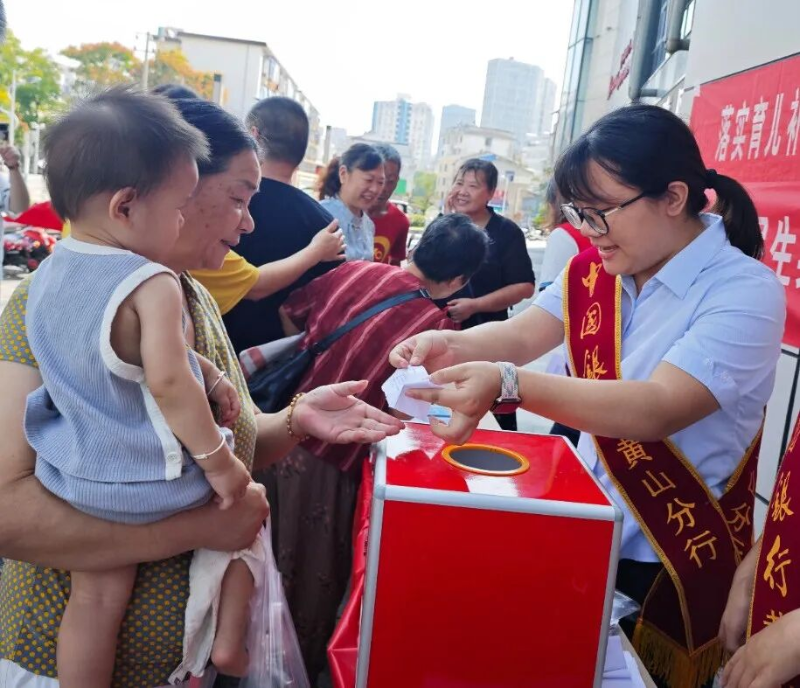 为积极响应国家政策,切实服务辖区居民,9月16日,阜上社区携手中国银行黄山分行,在社区文明实践广场成功举办了一场以“落实育儿补贴,网络安全为人民”为主题的联合宣传活动。
