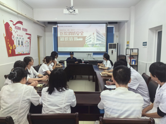 消防安全培训环节,消防人员通过PPT讲解与视频播放相结合的形式展开,培训内容包括确保消防安全的重要意义、火灾初期扑救方法,同时结合我院门诊患者集中等实际情况,针对性讲解了医疗场景下的逃生策略,包括如何协助不同类型的患者转移、安全通道优先选择等关键内容,确保职工既懂理论又会实操。