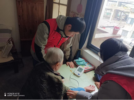 一行人走进孤寡老人家中,详细询问他们的身体状况、日常饮食起居及实际生活困难,耐心倾听老人心声。为老人们免费提供血压、血糖检测、心肺听诊、保健知识咨询指导等,针对老年人常见疾病预防、不良生活方式、用药不规范等问题开展个体化健康指导,增强自我保健意识。同时还为老人们送上生活慰问品,帮助老人整理房间、打扫卫生,用实际行动为老人们送去关爱与温暖。