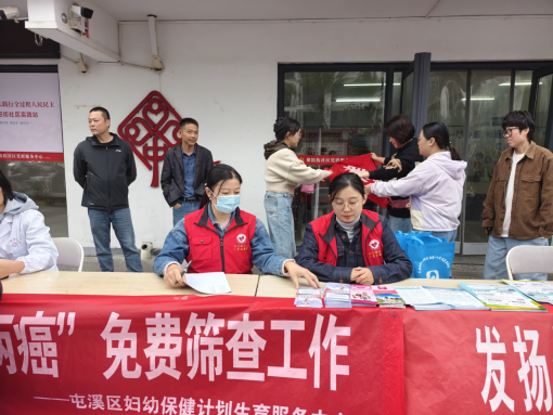 近日,屯溪区妇计中心前往黎阳街社区,开展“两癌”(宫颈癌、乳腺癌)免费筛查宣传活动,为社区女性送上健康服务。