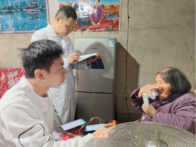 黎阳镇卫生院组建专业医疗服务小队,主动走进社区、走入村落,为辖区内行动不便的65周岁及以上老年人提供免费的上门肺功能检测服务。聚焦高龄、空巢及行动不便老人“出门难、检查难”的问题,将专业的医疗资源直接送至居民家中,是实现疾病“早发现、早诊断、早治疗”的惠民务实之举。随后,黎阳镇卫生院将根据检测结果进行数据分析与跟踪随访。